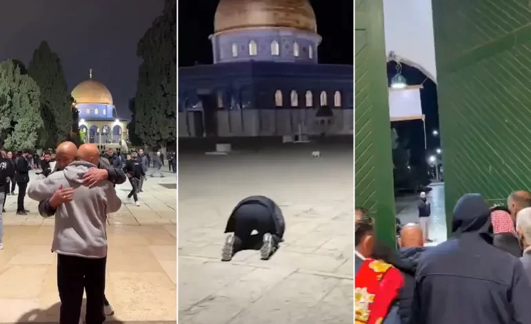 واندفعت الجموع نحو الباحات وسط تكبيرات وسجدات شكر لله على البلاط العتيق، فيما عبر عدد من المصلين عن فرحتهم الغامرة بتمكنهم من أداء صلاة الفجر، وشهد الأقصى صدح المصلين بتكبيرات العيد بعد انتهاء الصلاة إعلانا بعودة الروح للمكان.