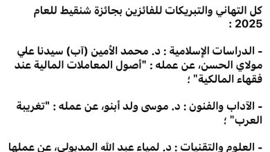 جائزة شنقيط تعلن أسماء الفائزين في دورتها لعام 2025